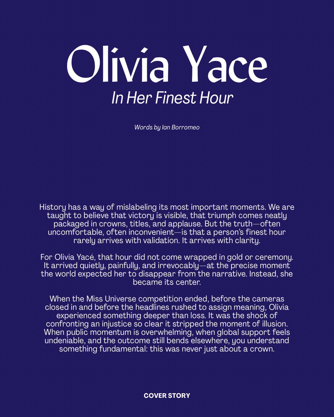 « Être en couverture, ce n’est pas seulement prêter son visage à une revue ; c’est offrir une plateforme à une identité, à une fierté et à une vision qui dépasse les frontières. »