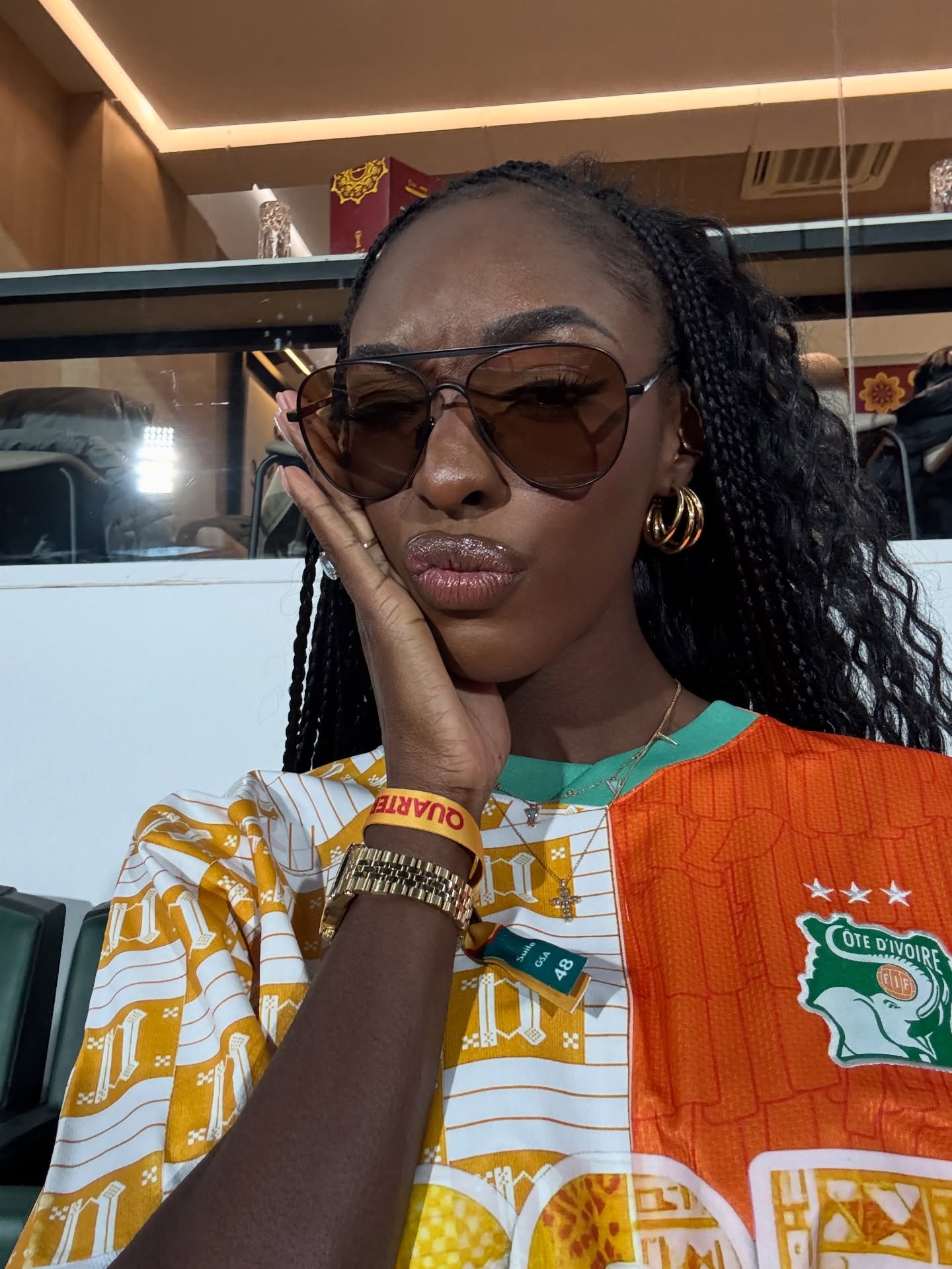 On me demande souvent si l’on peut allier style et ferveur sportive. Ma réponse réside dans ce sentiment de fierté : porter nos couleurs est l’accessoire le plus précieux qui soit. Dans les tribunes, entourée de mes frères et sœurs ivoiriens, j’ai vu une jeunesse disciplinée et passionnée. C’est cette image de la Côte d’Ivoire que je m’efforce de porter partout dans le monde : une nation forte, solidaire et déterminée.